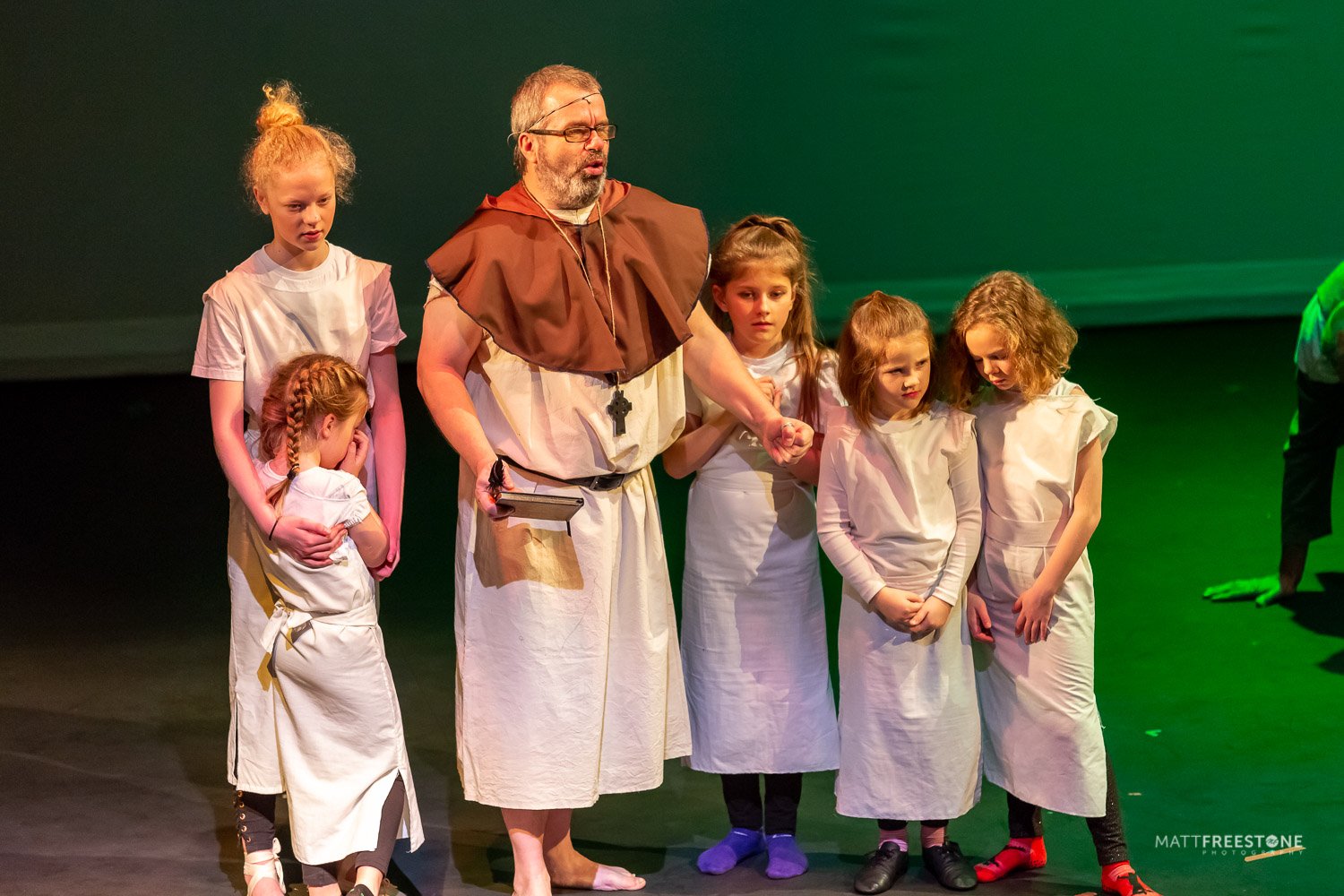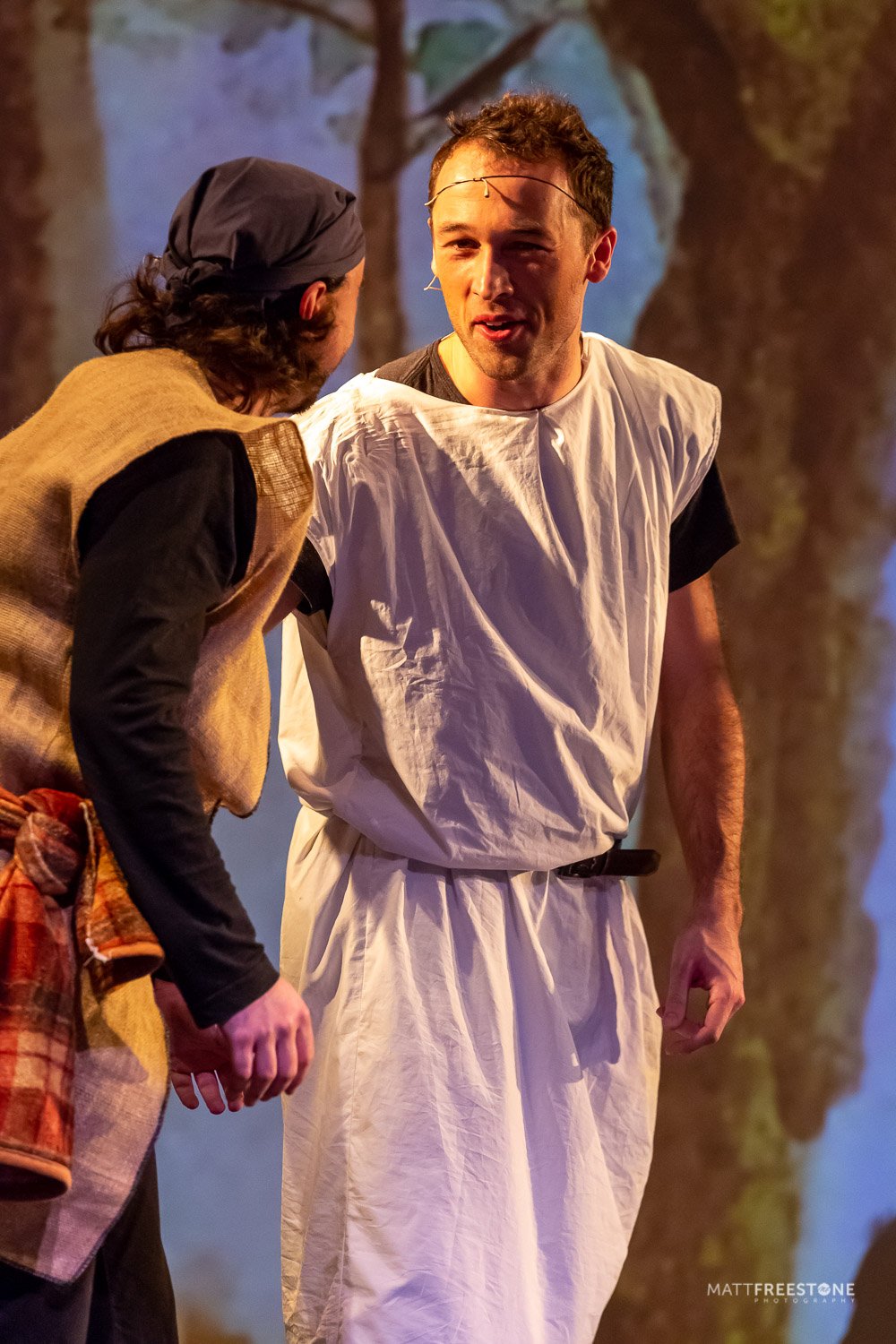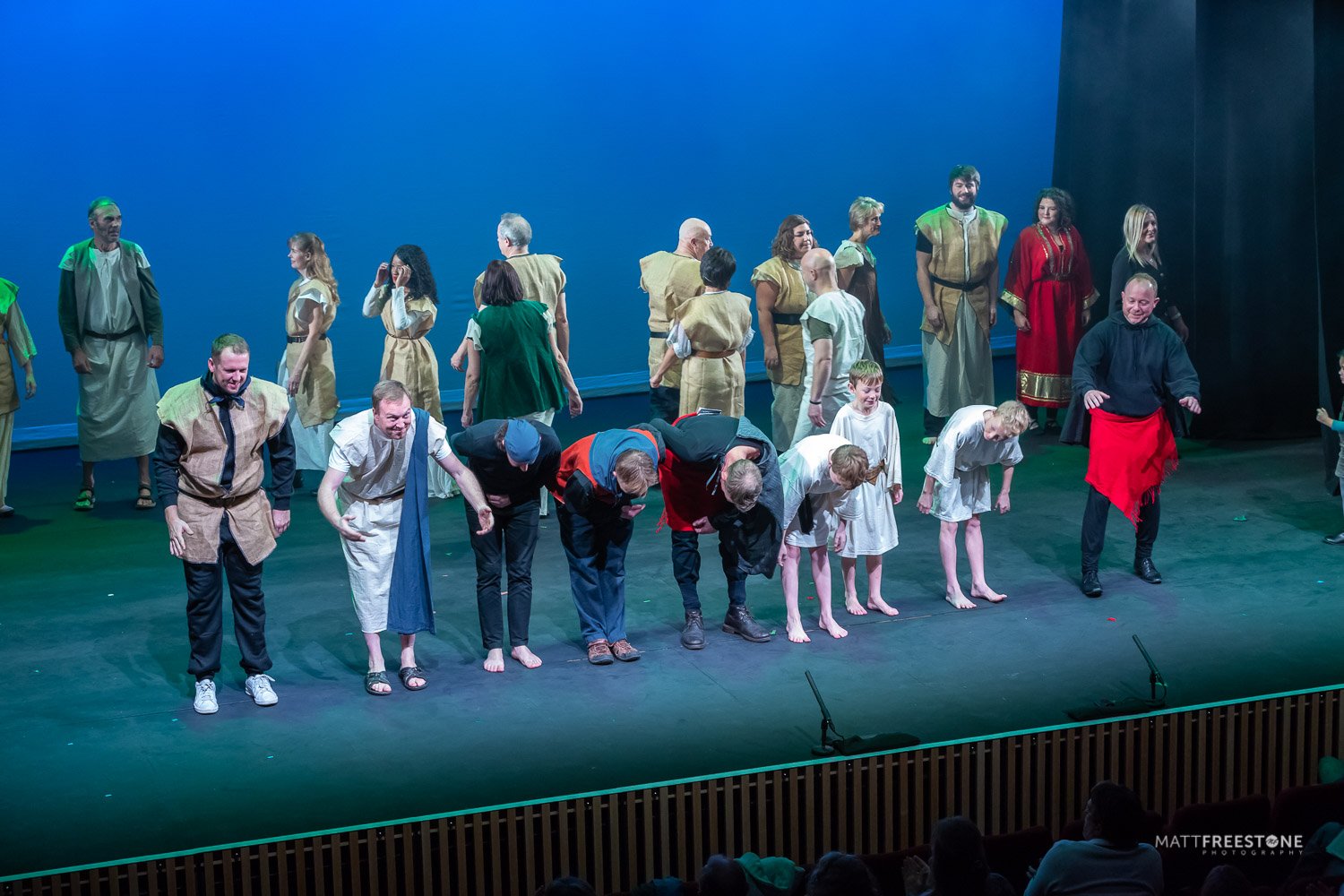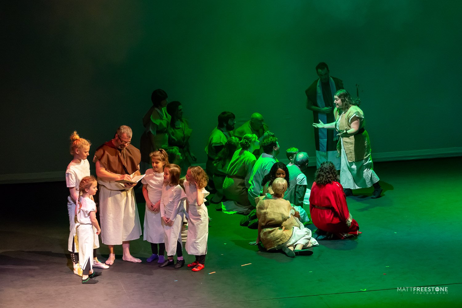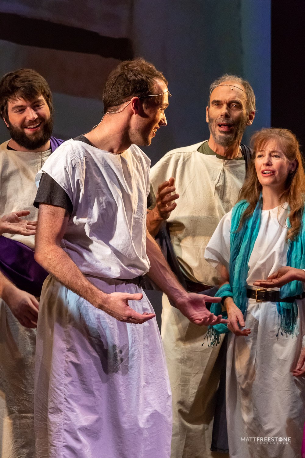 After the Musical opens in the present day with St Patrick’s Day revellers enjoying themselves near a Parade on 17th March, we are then transported back to the 4th/ 5th Century into a British Roman-style community where Patrick grew up with his parents, Calpernius and Conchessa. The story then unfolds using a series of flashbacks described by both narrators and by old Patrick who tells young people about his life: