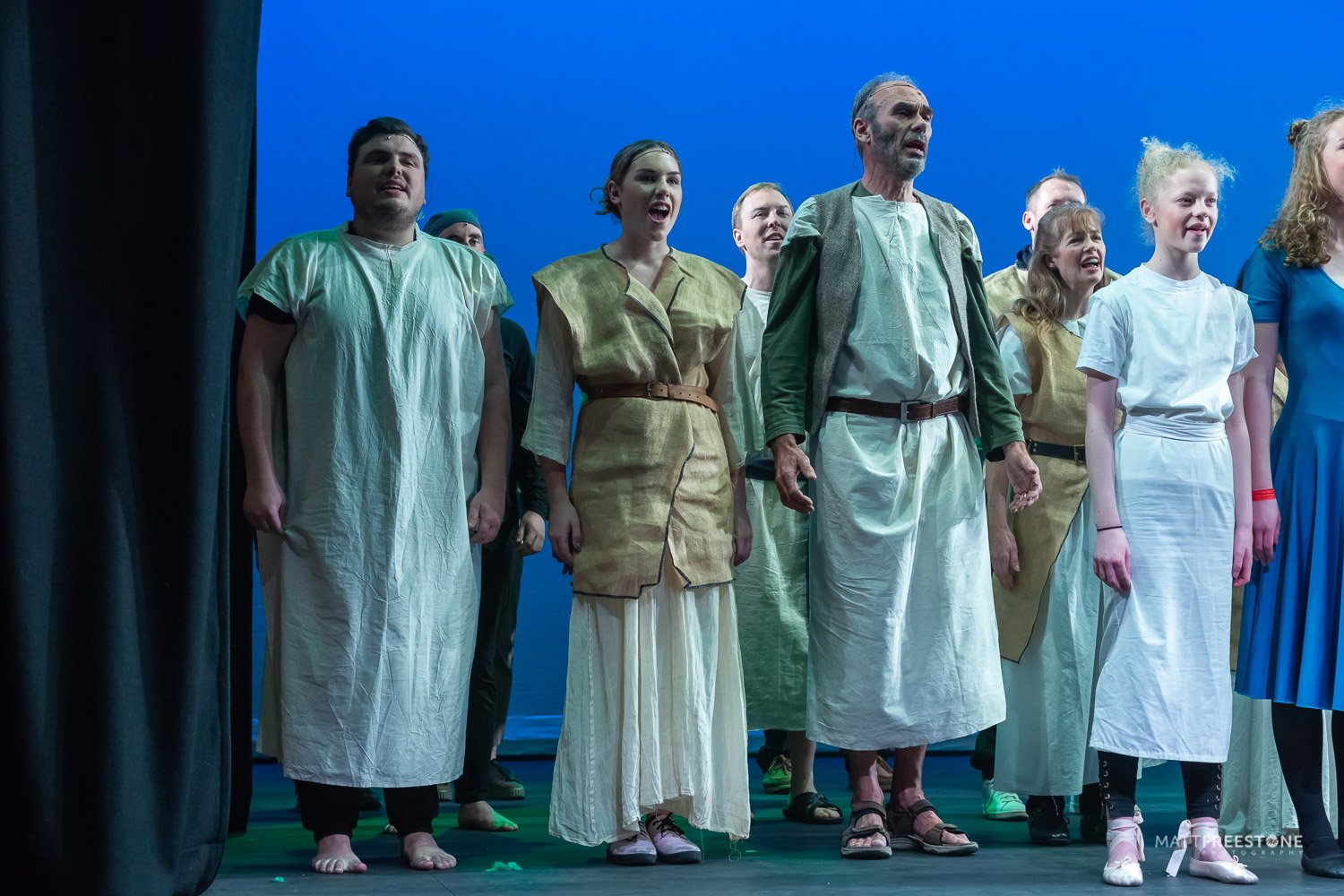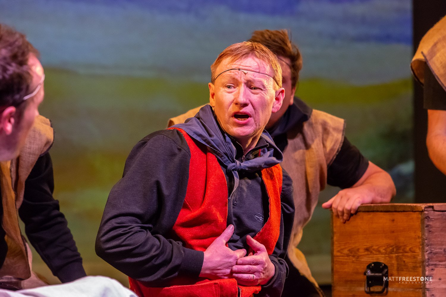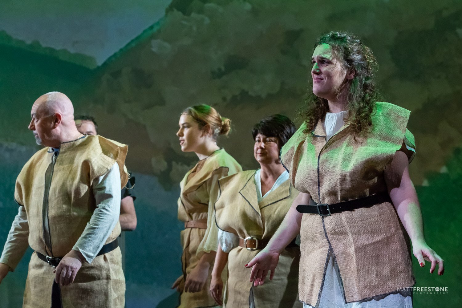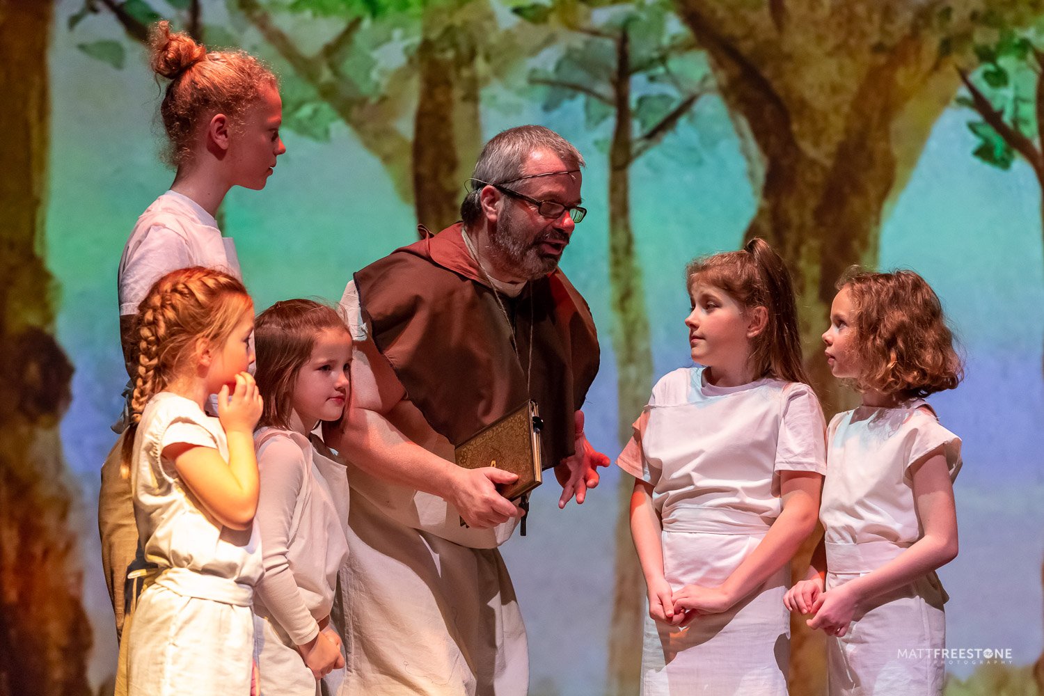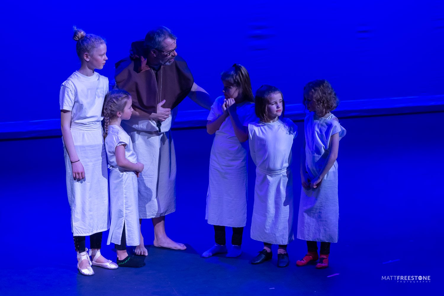 After the Musical opens in the present day with St Patrick’s Day revellers enjoying themselves near a Parade on 17th March, we are then transported back to the 4th/ 5th Century into a British Roman-style community where Patrick grew up with his parents, Calpernius and Conchessa. The story then unfolds using a series of flashbacks described by both narrators and by old Patrick who tells young people about his life: