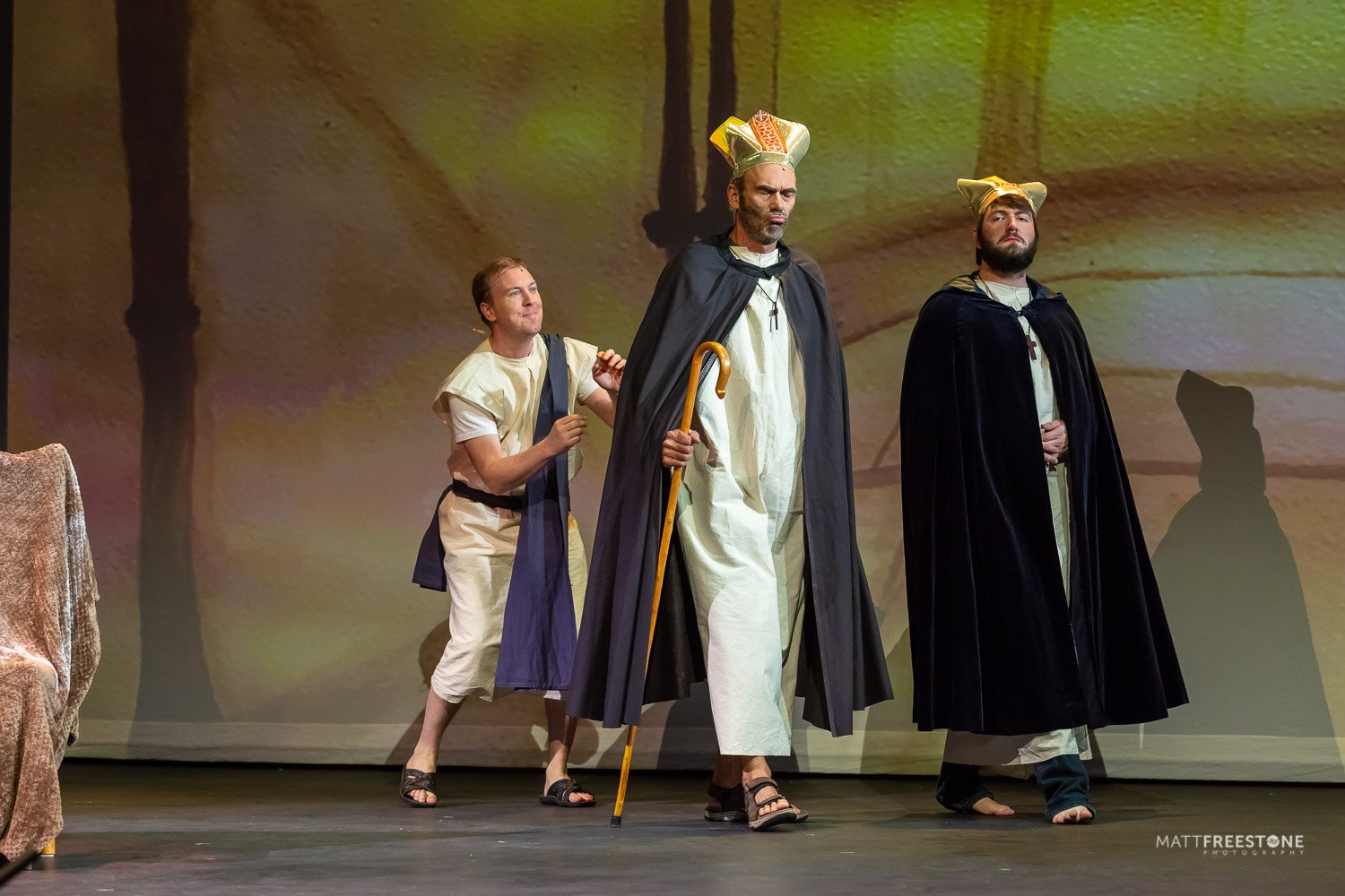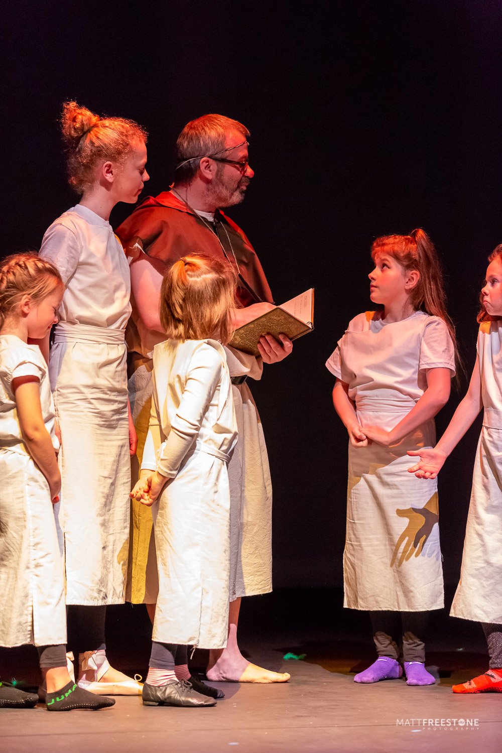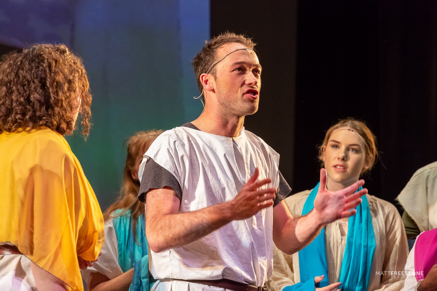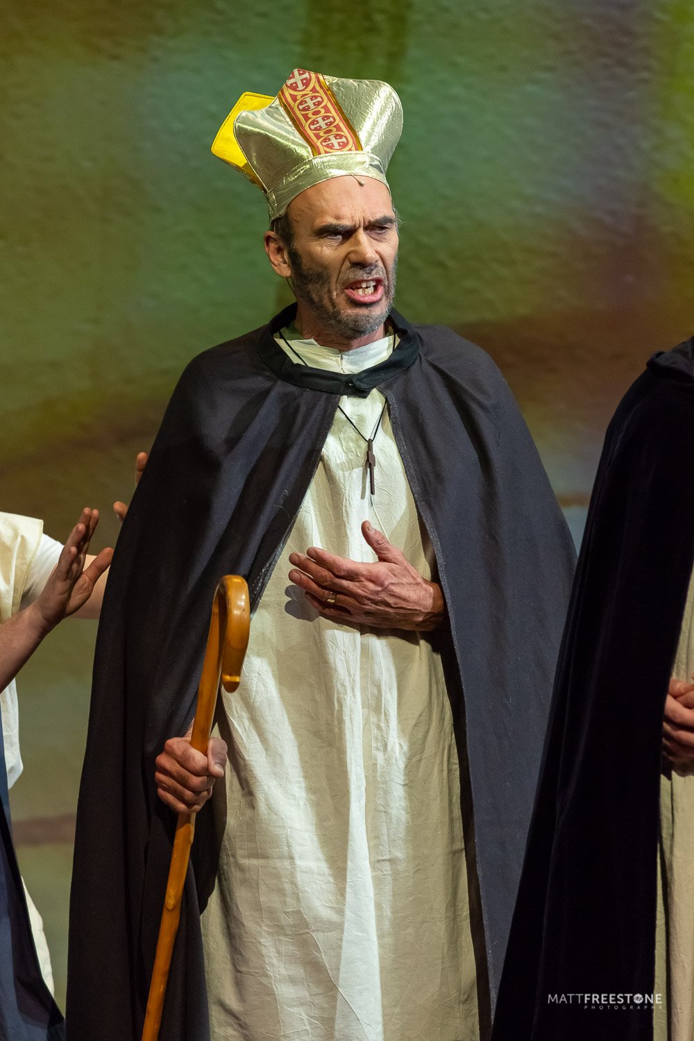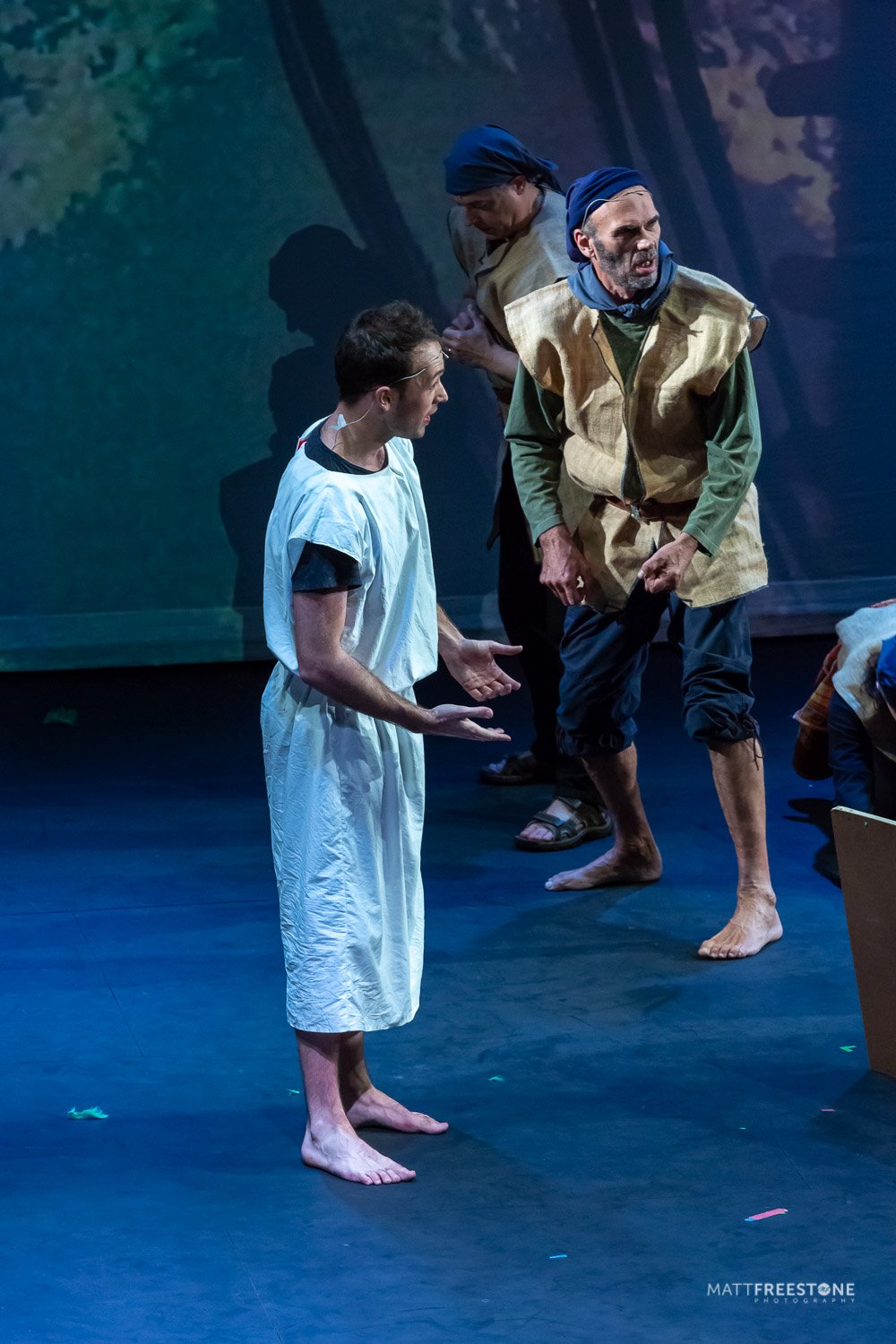 After the Musical opens in the present day with St Patrick’s Day revellers enjoying themselves near a Parade on 17th March, we are then transported back to the 4th/ 5th Century into a British Roman-style community where Patrick grew up with his parents, Calpernius and Conchessa. The story then unfolds using a series of flashbacks described by both narrators and by old Patrick who tells young people about his life: