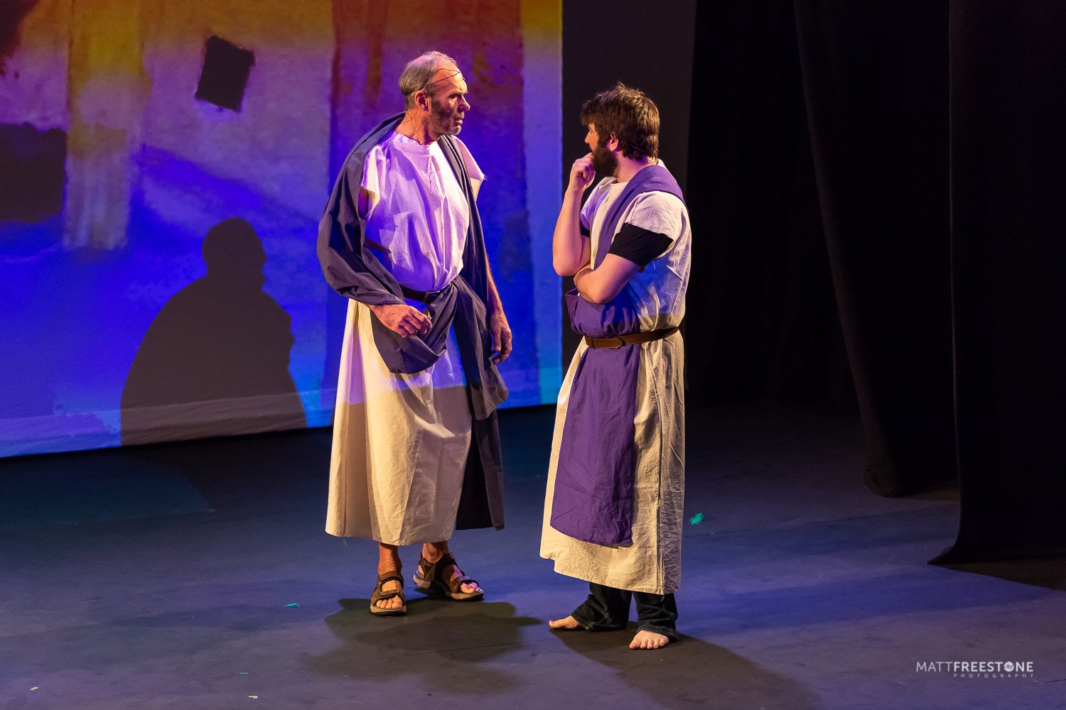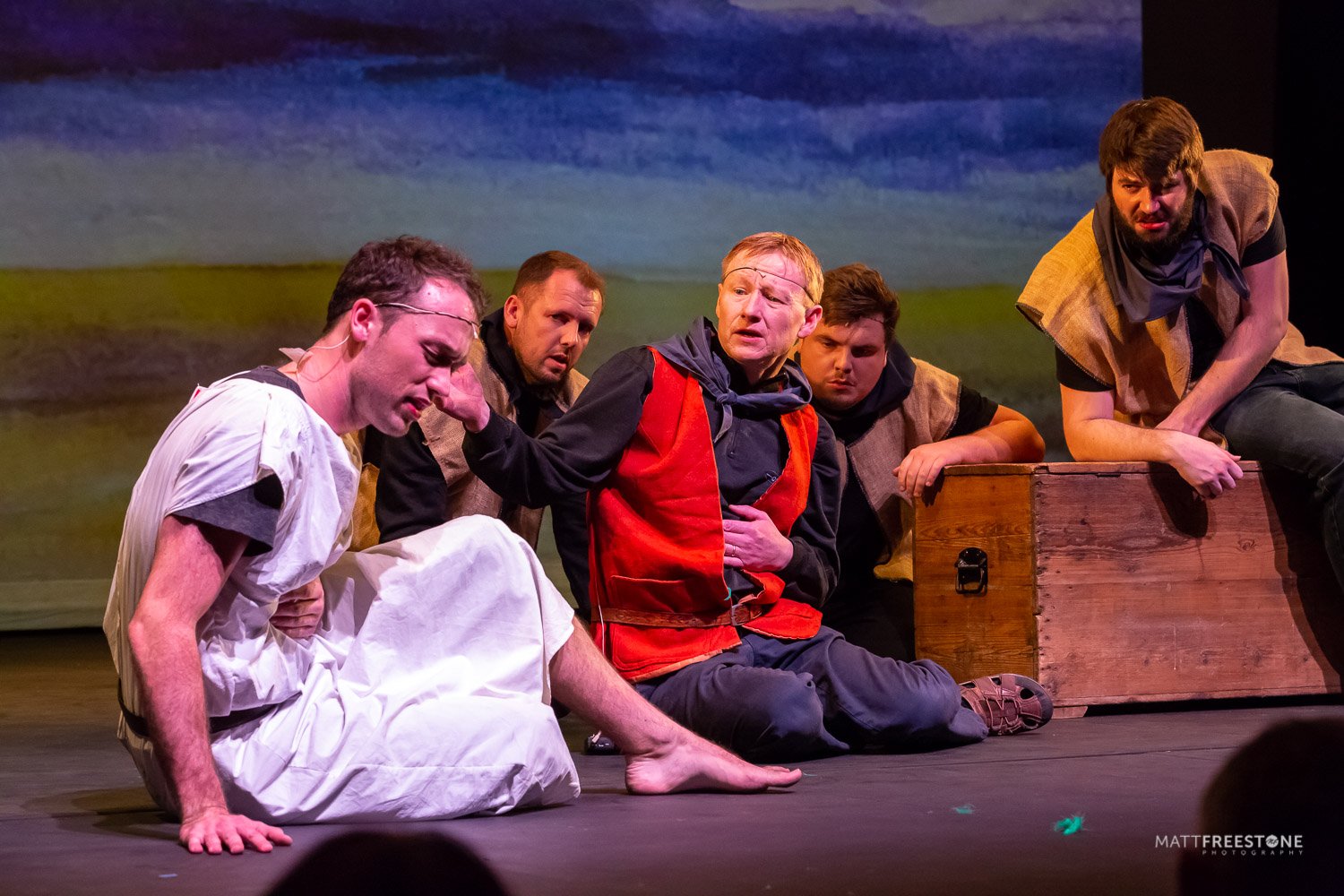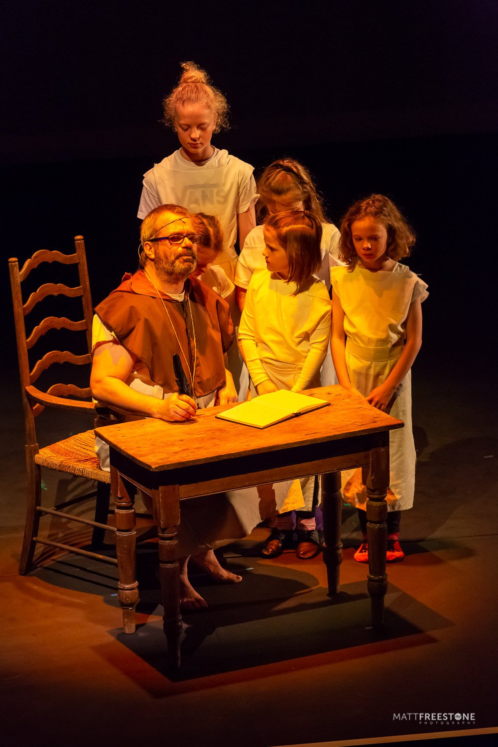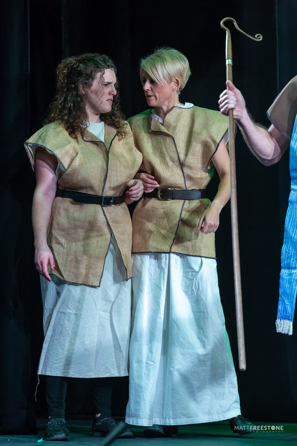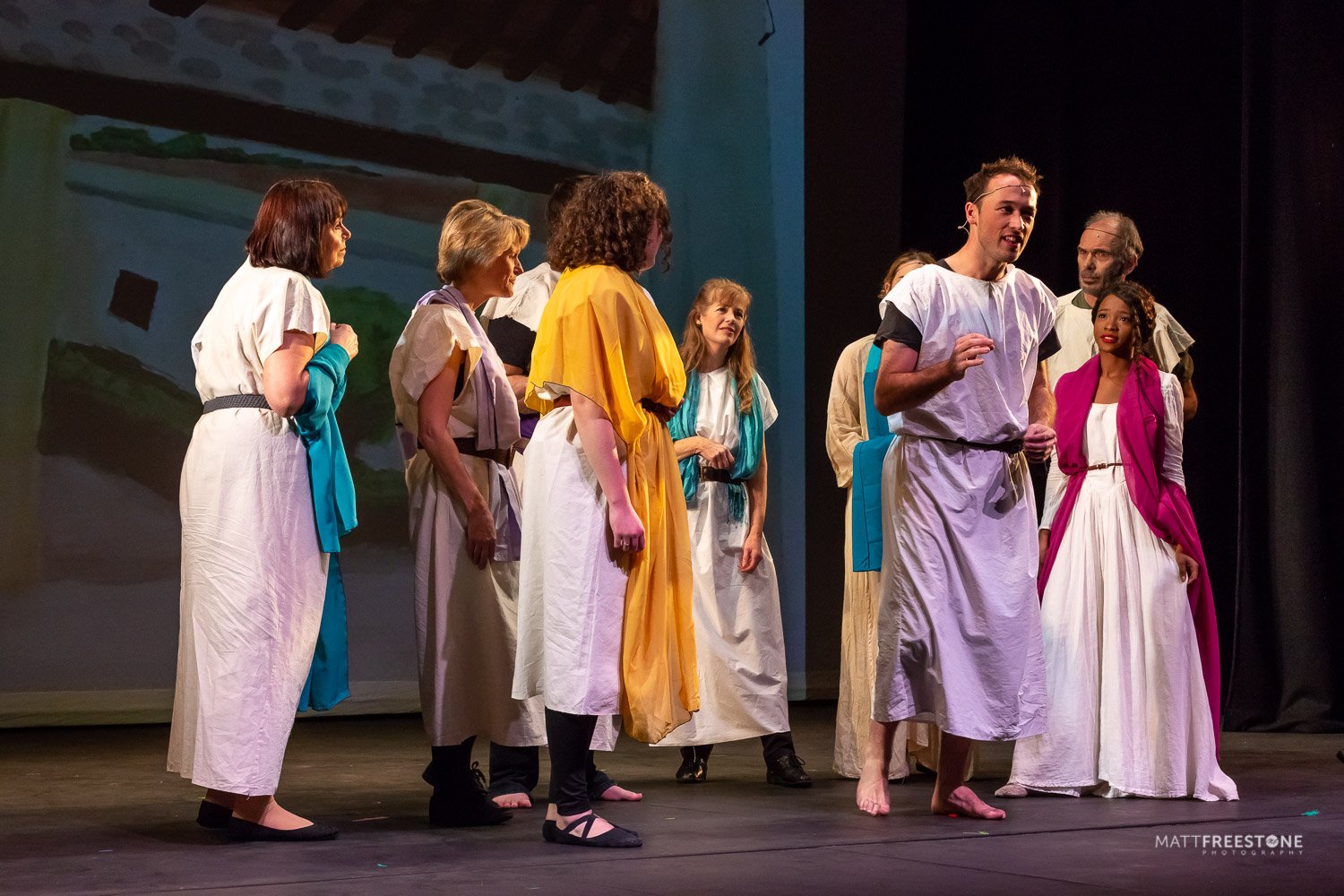 After the Musical opens in the present day with St Patrick’s Day revellers enjoying themselves near a Parade on 17th March, we are then transported back to the 4th/ 5th Century into a British Roman-style community where Patrick grew up with his parents, Calpernius and Conchessa. The story then unfolds using a series of flashbacks described by both narrators and by old Patrick who tells young people about his life:
