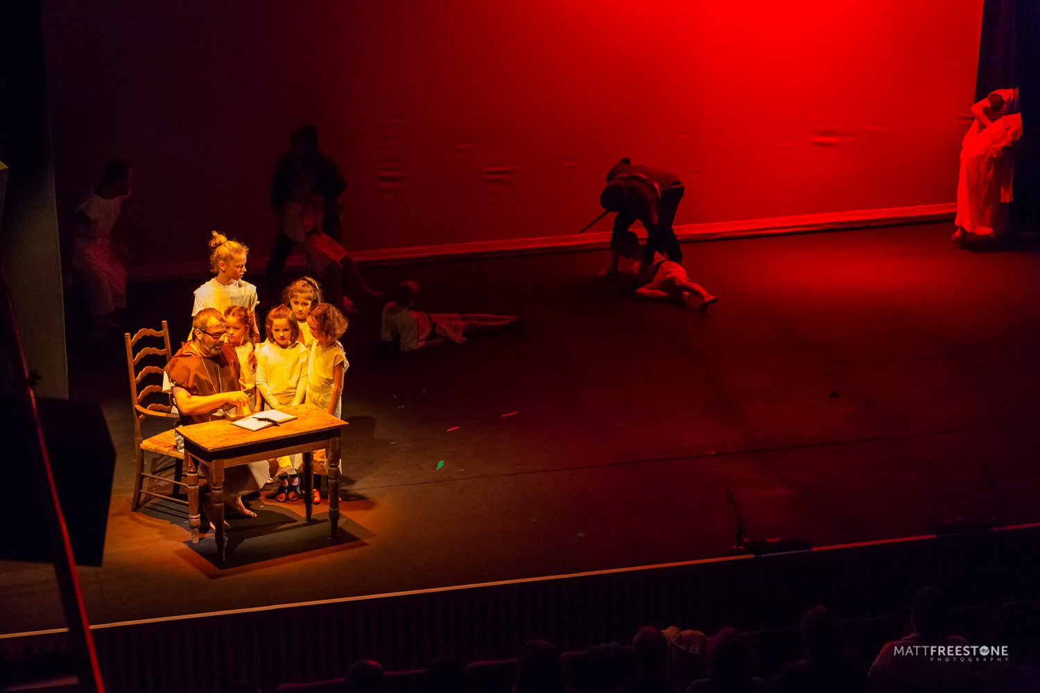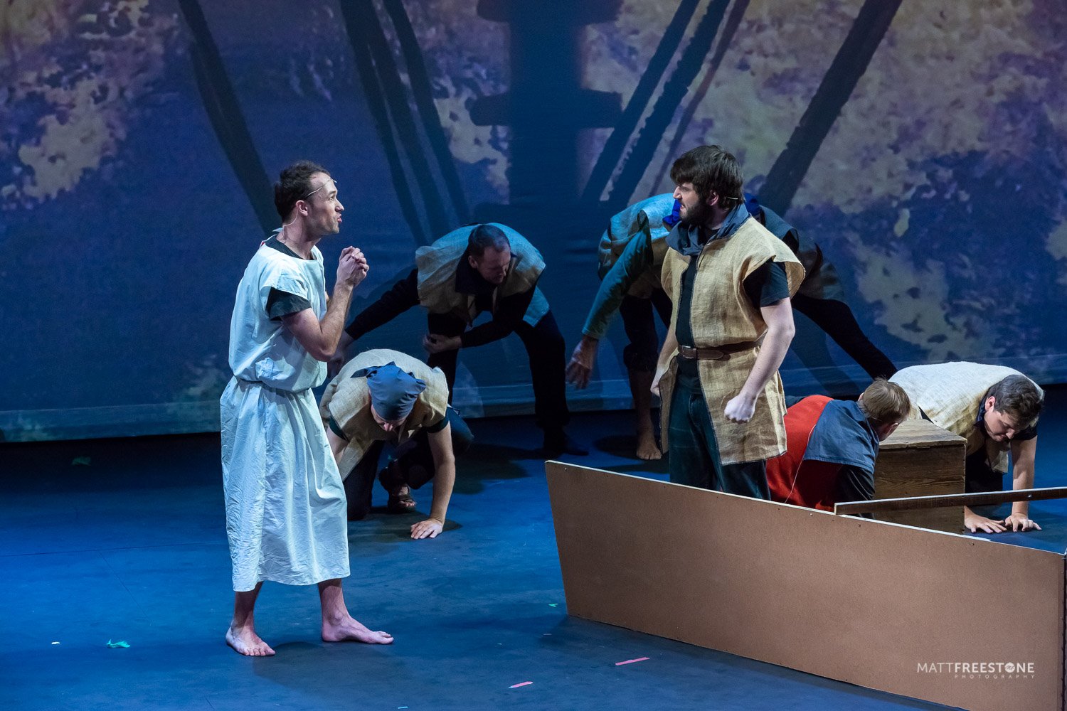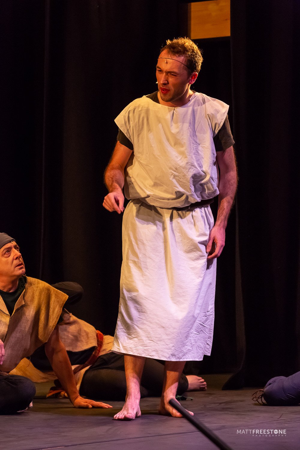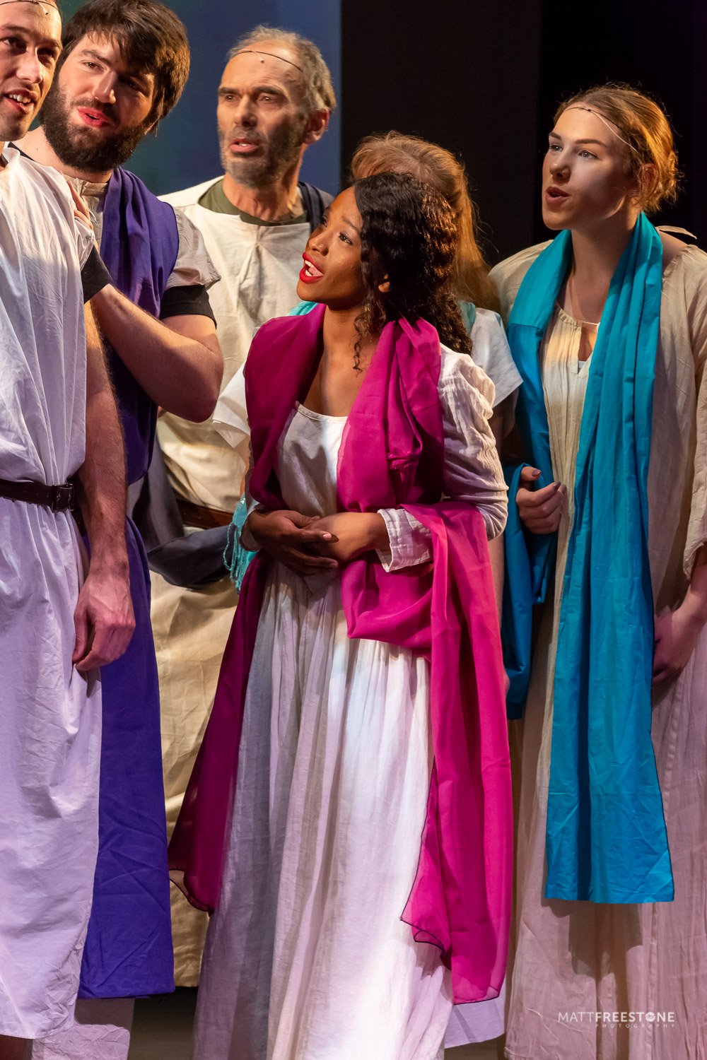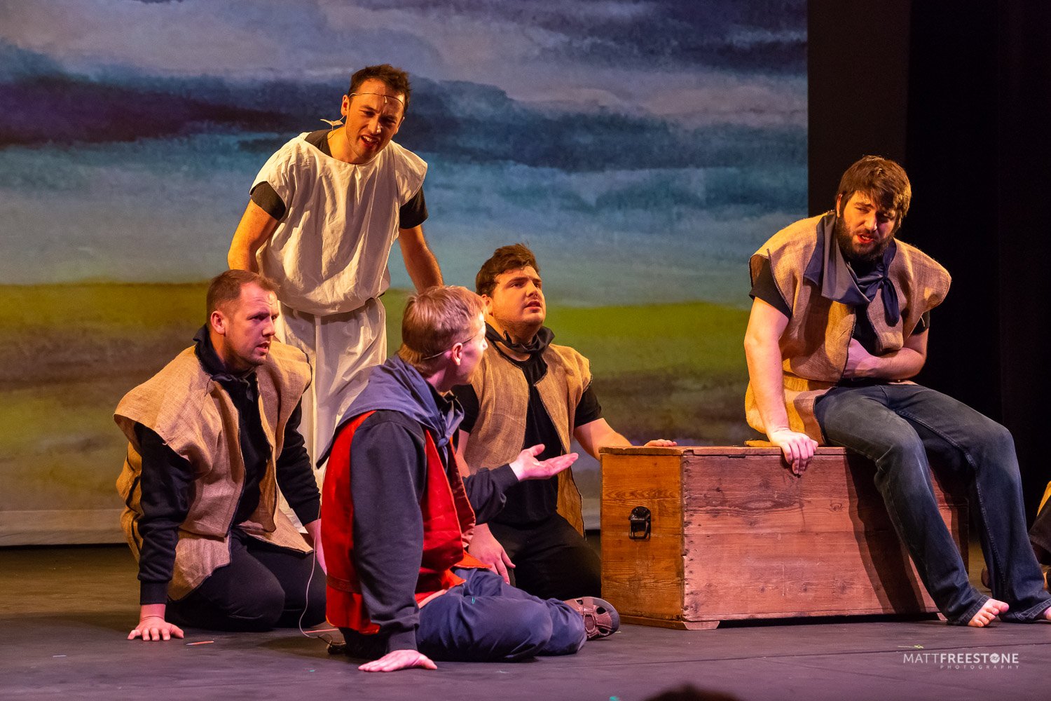 After the Musical opens in the present day with St Patrick’s Day revellers enjoying themselves near a Parade on 17th March, we are then transported back to the 4th/ 5th Century into a British Roman-style community where Patrick grew up with his parents, Calpernius and Conchessa. The story then unfolds using a series of flashbacks described by both narrators and by old Patrick who tells young people about his life: