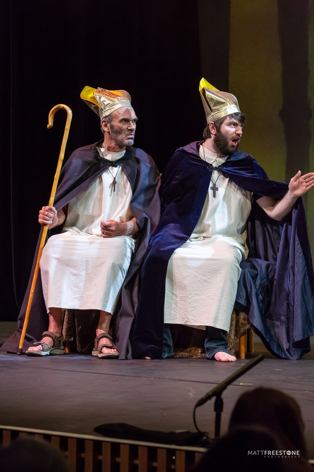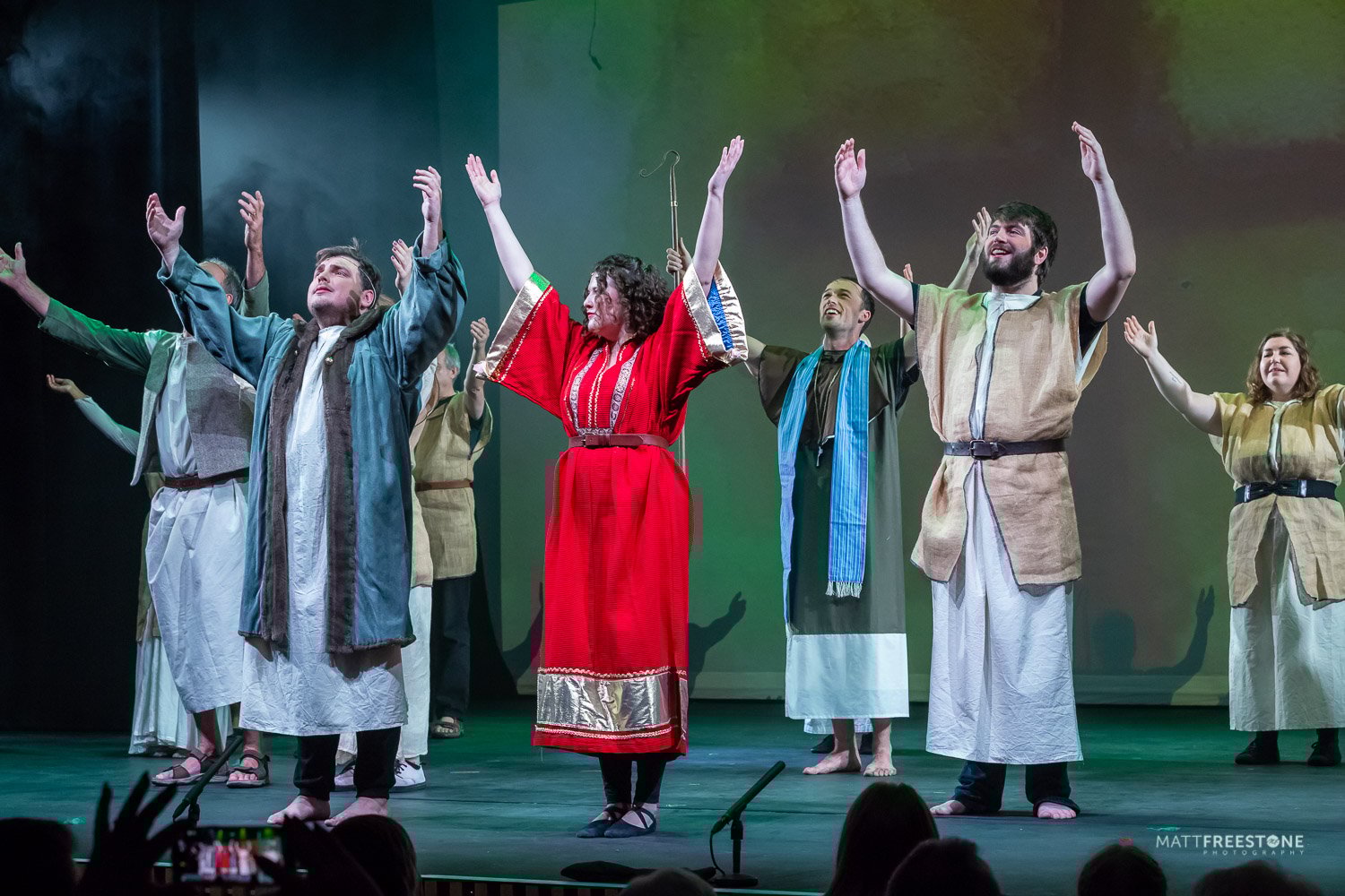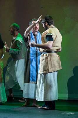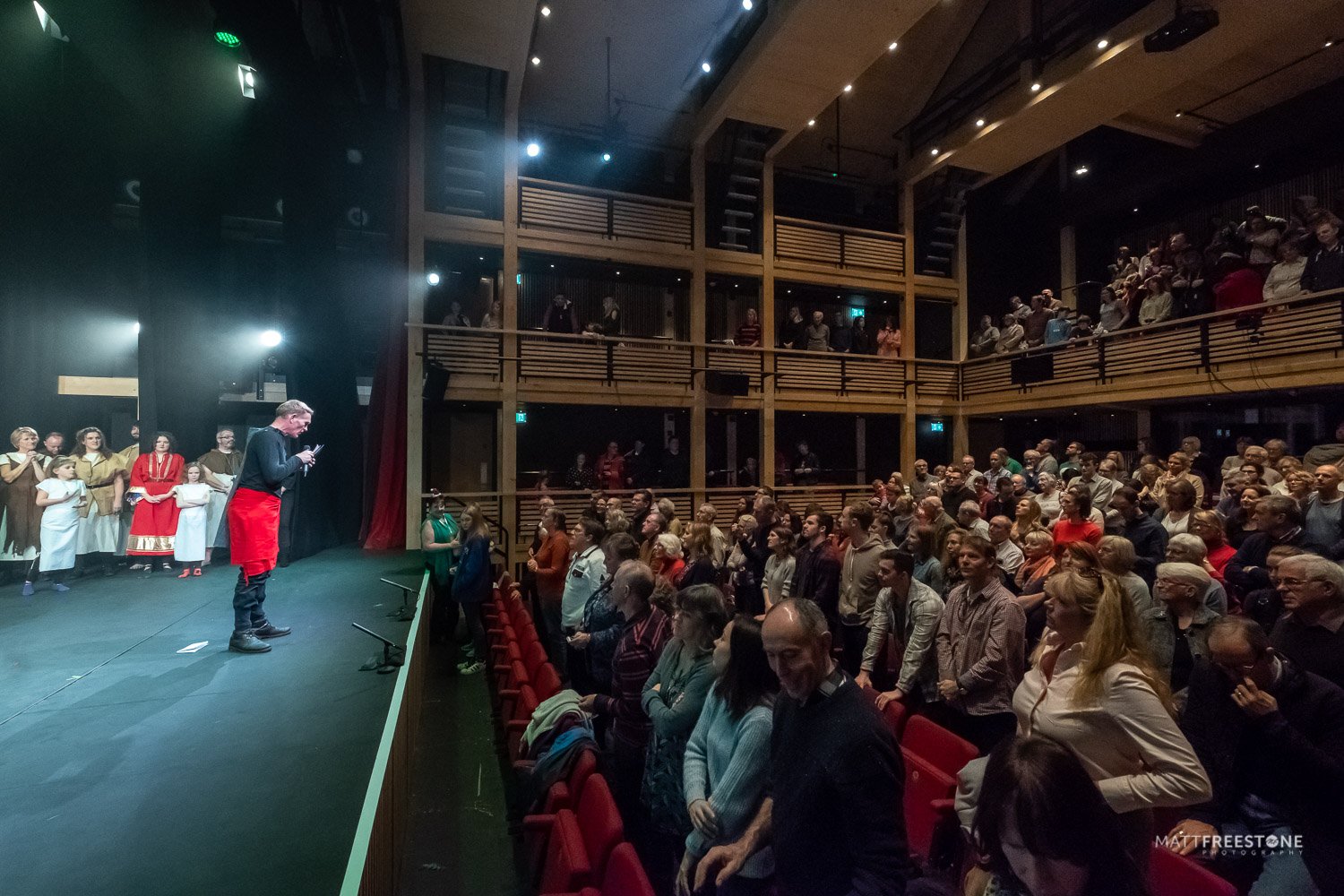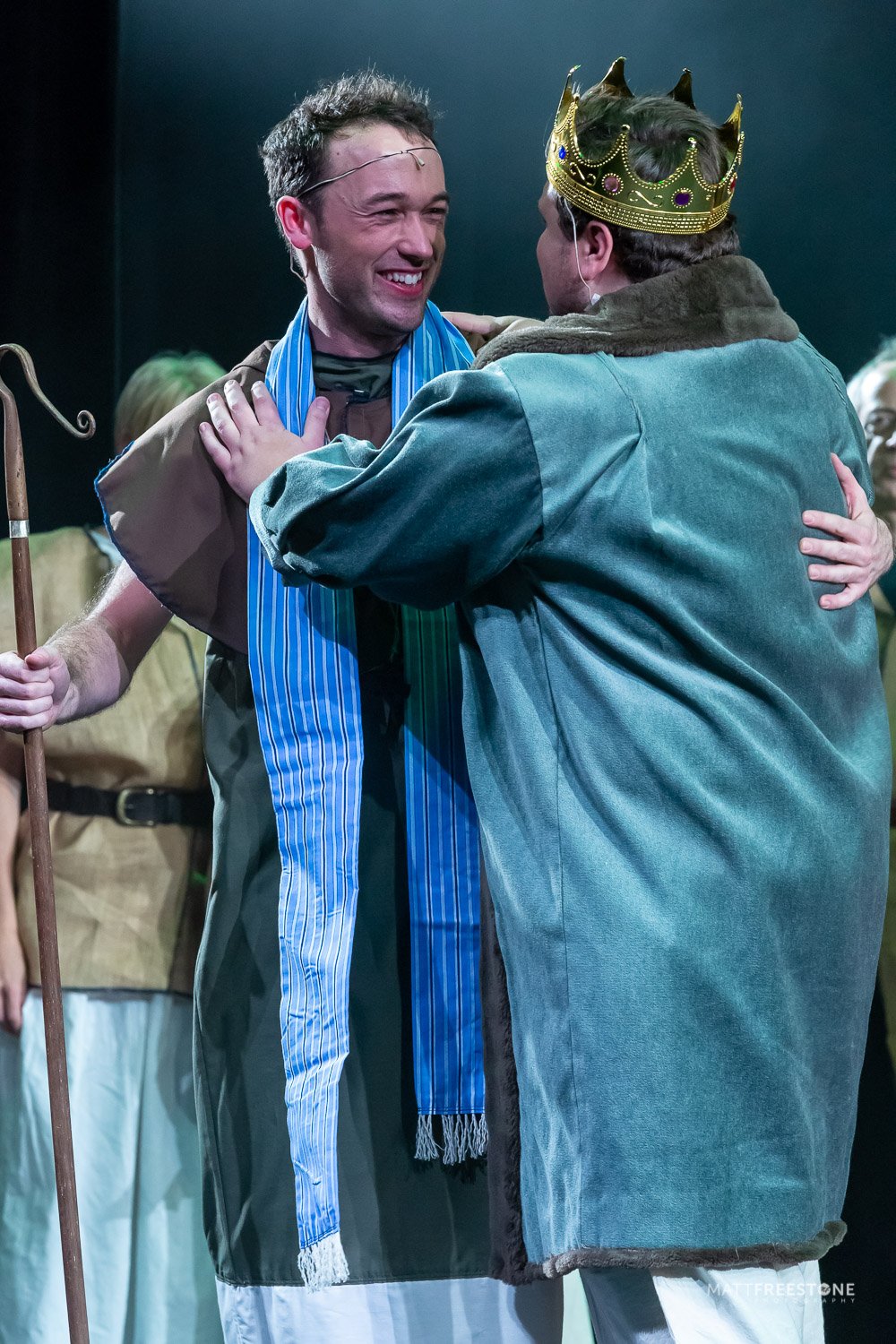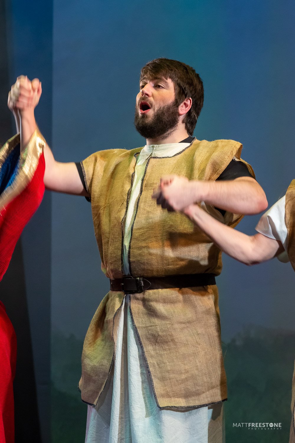 After the Musical opens in the present day with St Patrick’s Day revellers enjoying themselves near a Parade on 17th March, we are then transported back to the 4th/ 5th Century into a British Roman-style community where Patrick grew up with his parents, Calpernius and Conchessa. The story then unfolds using a series of flashbacks described by both narrators and by old Patrick who tells young people about his life: