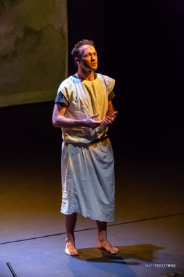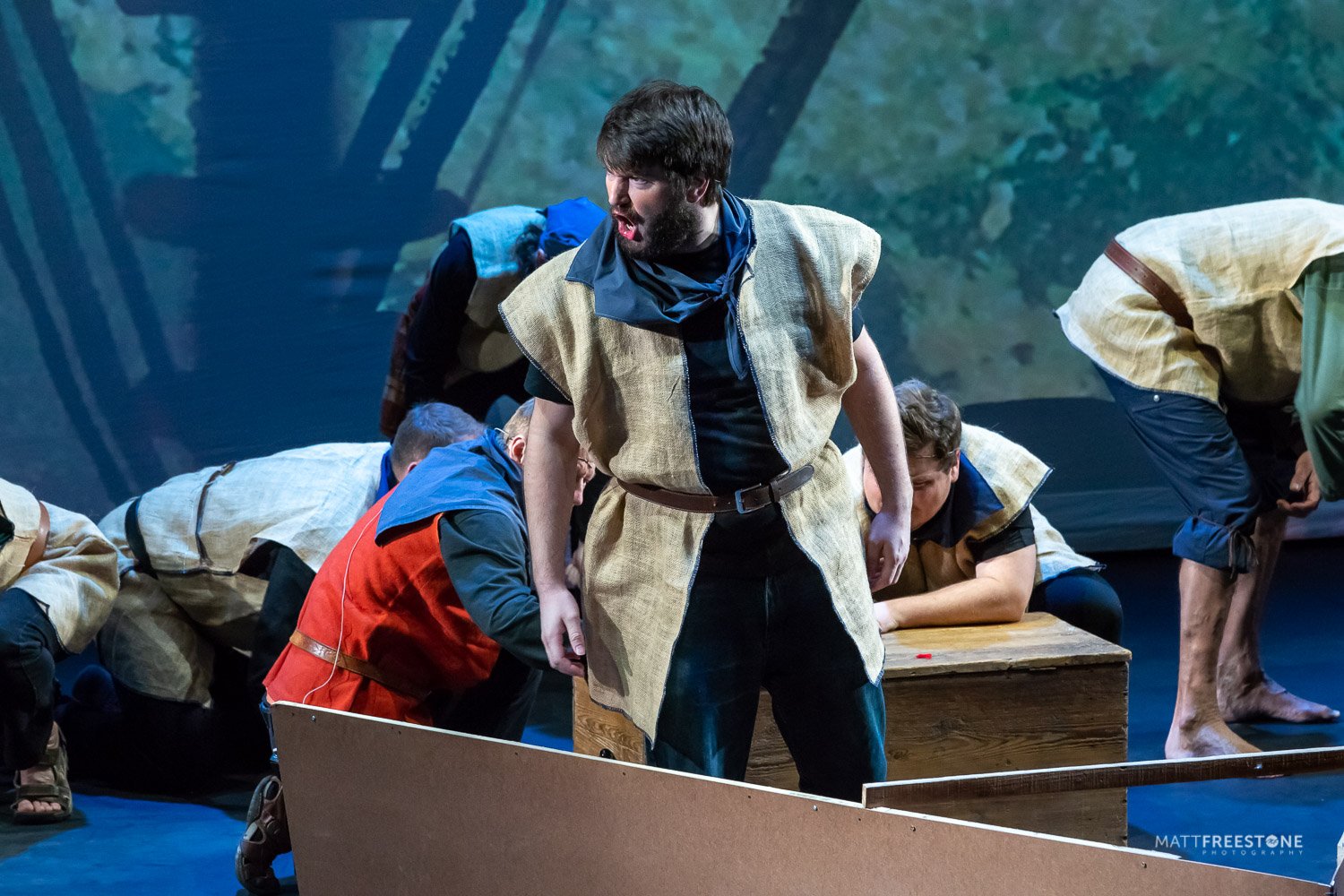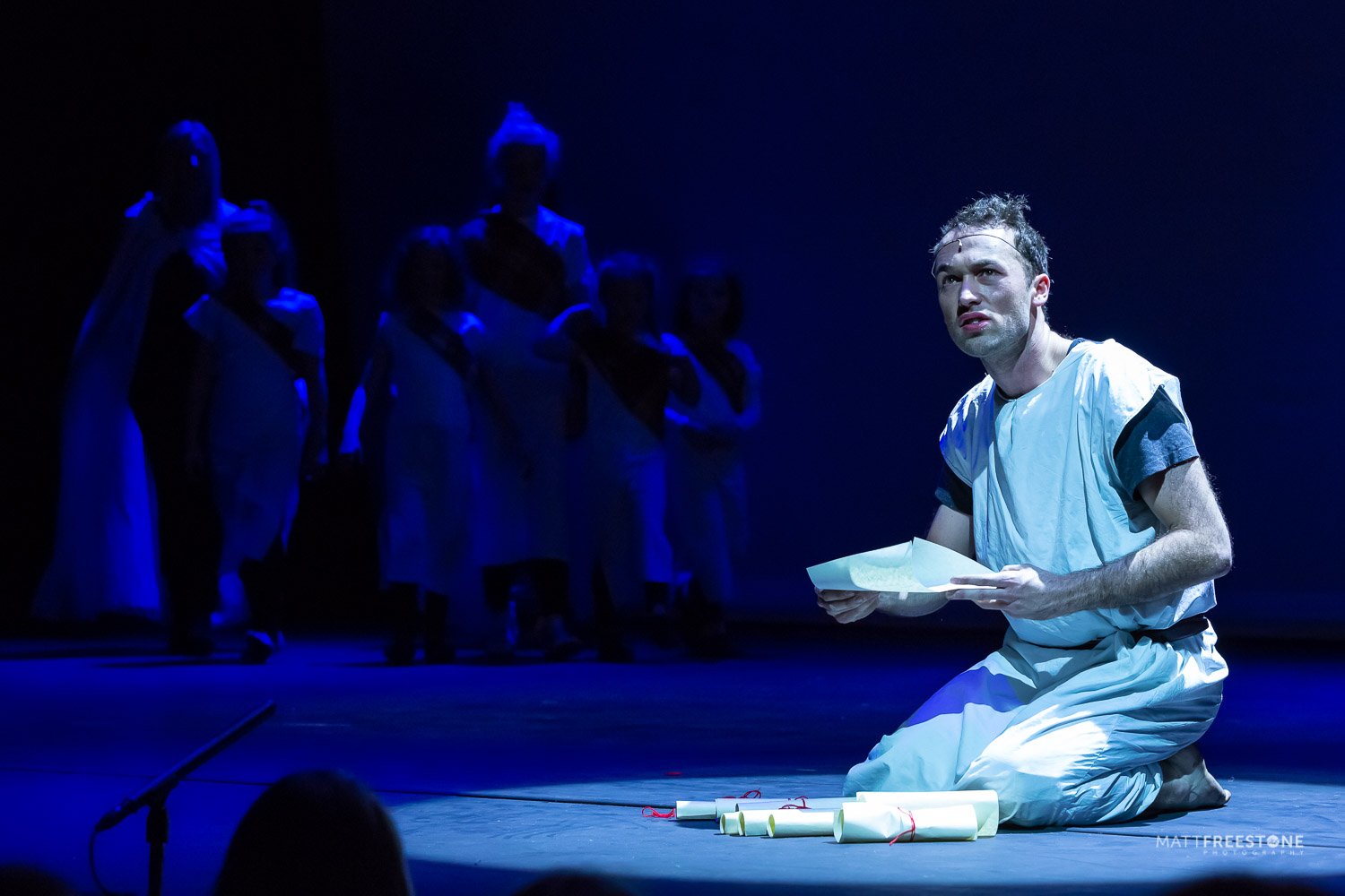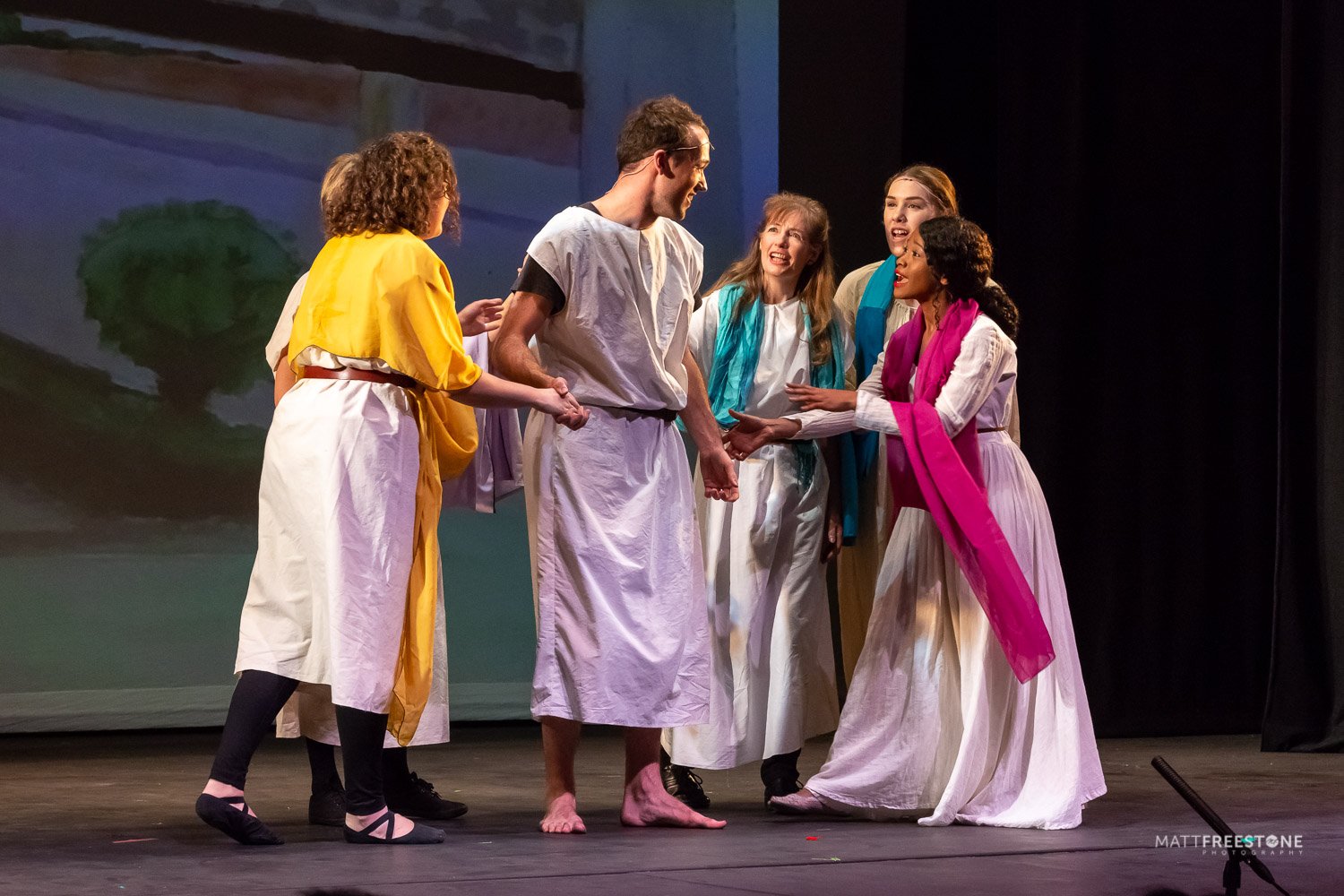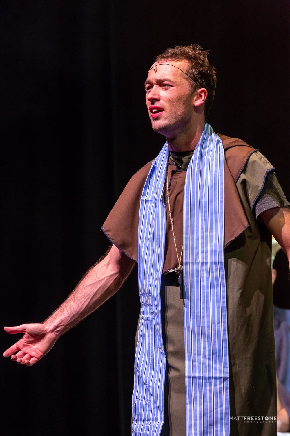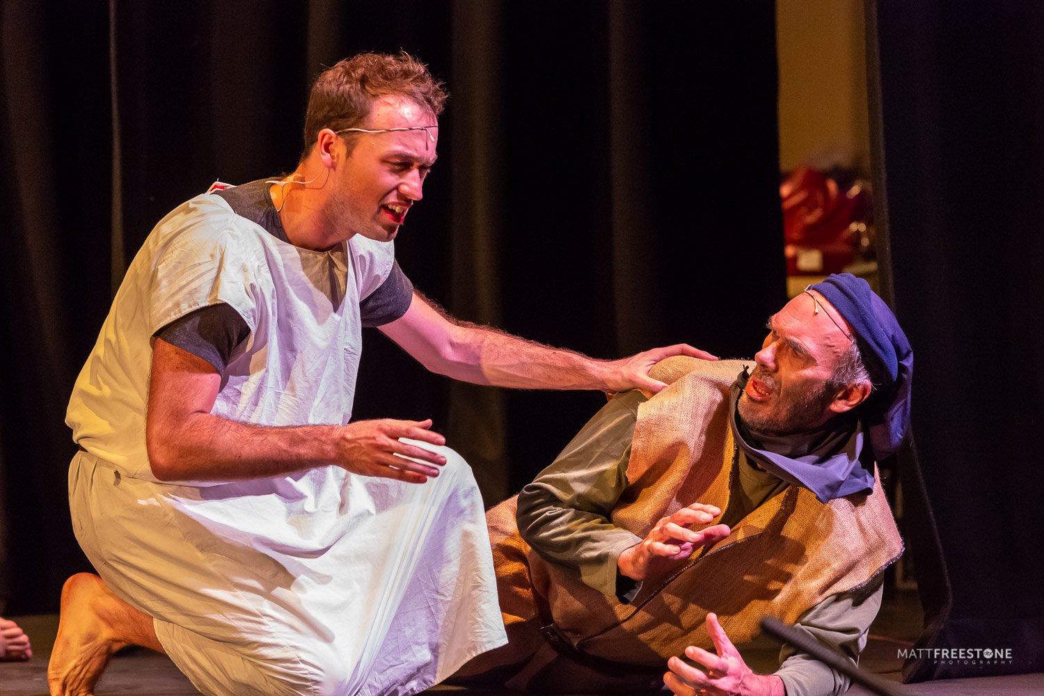 After the Musical opens in the present day with St Patrick’s Day revellers enjoying themselves near a Parade on 17th March, we are then transported back to the 4th/ 5th Century into a British Roman-style community where Patrick grew up with his parents, Calpernius and Conchessa. The story then unfolds using a series of flashbacks described by both narrators and by old Patrick who tells young people about his life: