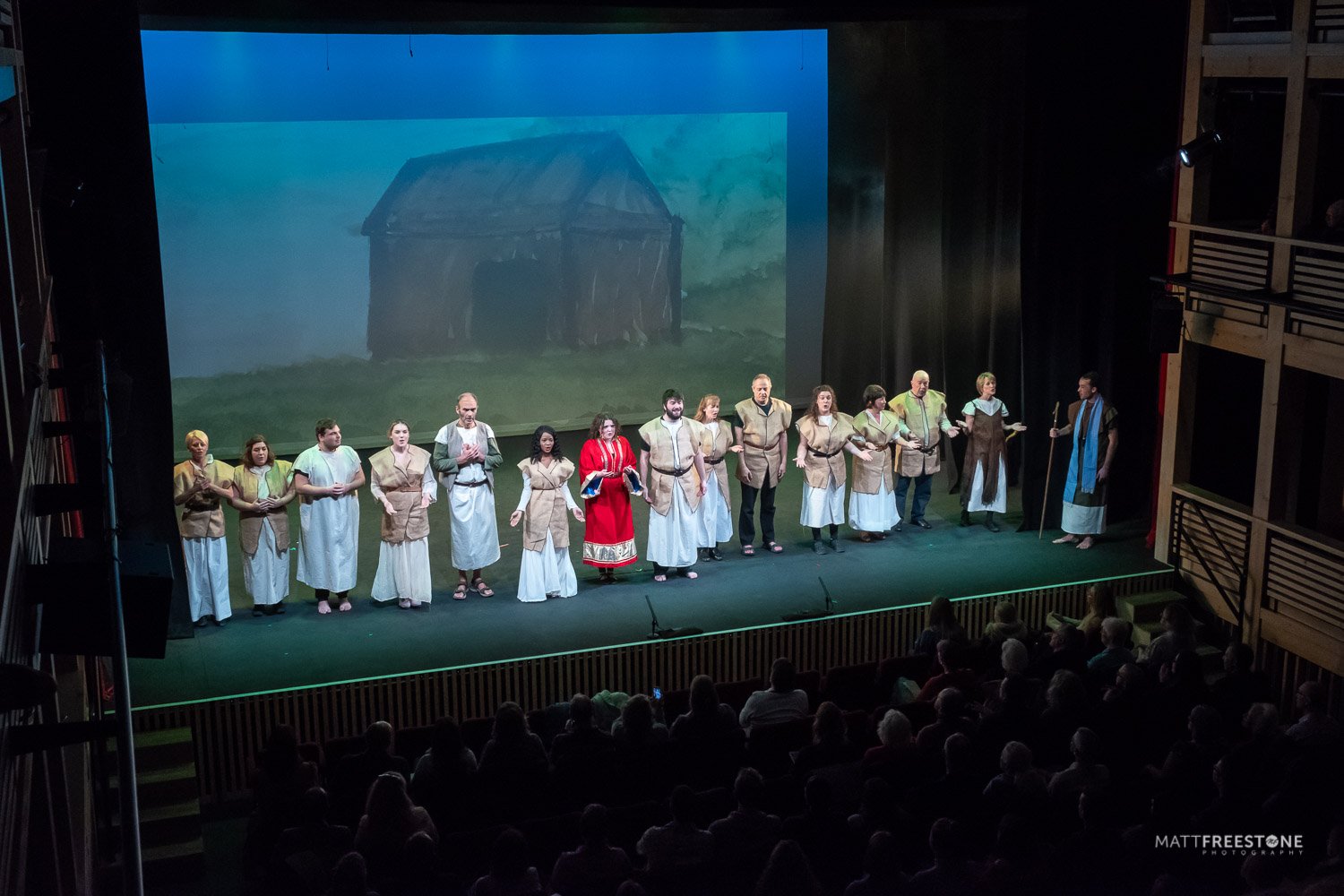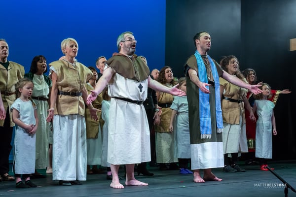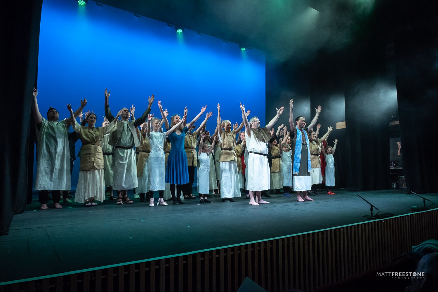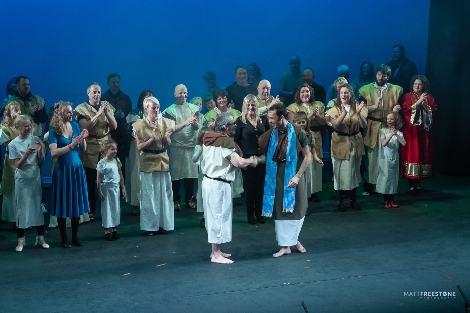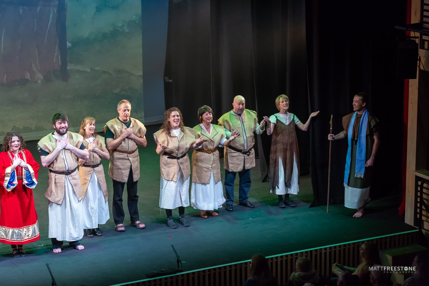 On his return to Ireland he encounters Dichu, a high king in County Down who becomes the first convert. Quickly others see the freedom that Jesus brings through forgiveness and grace, and very soon Patrick establishes numbers of churches across the country in the Judeo-Christian tradition. [Note: within a century, subsequent converts like Brendan, Aidan and Bridgit then spread the Gospel to Scotland, Wales, Northern England and even to Nova Scotia! Ireland really did become the land of Saints and Scholars.] The Musical ends with a declaration by 5th century folk and also by the modern-day characters who have attended the Parade. The attitude of the people has changed. They no longer want to live just for themselves, but for Christ and for others.