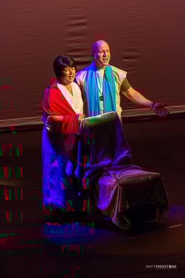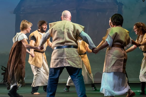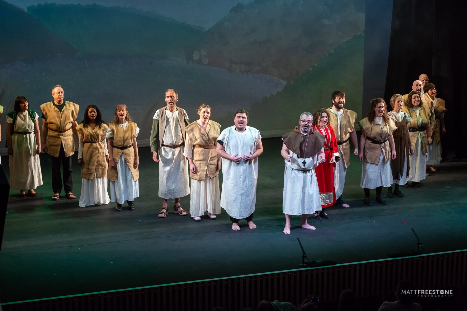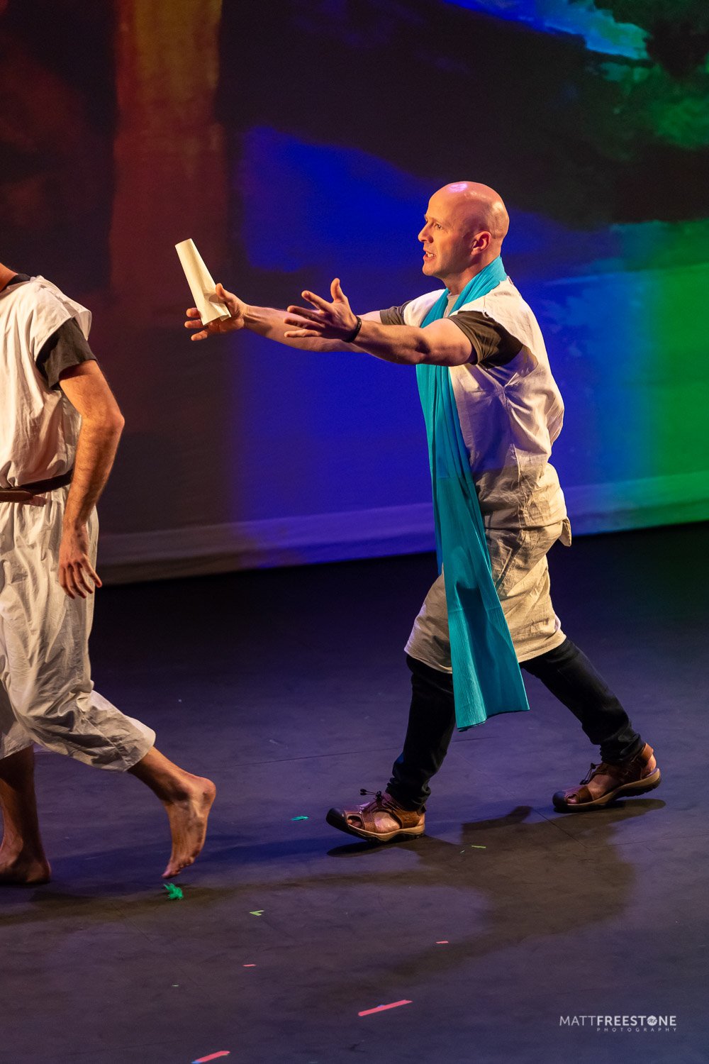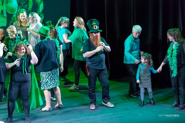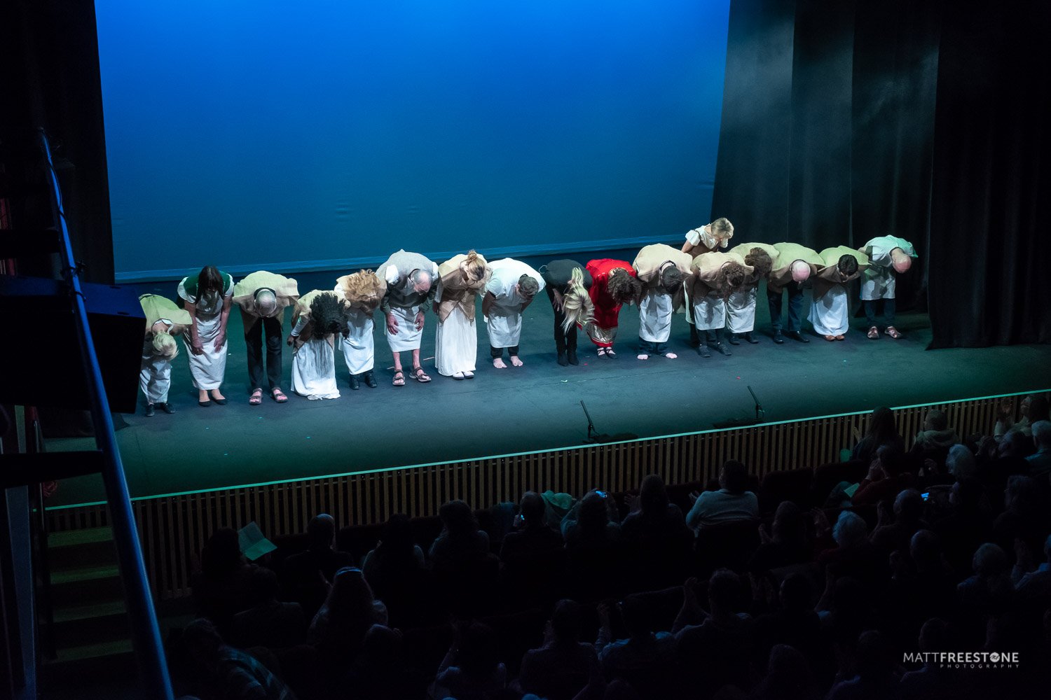 On his return to Ireland he encounters Dichu, a high king in County Down who becomes the first convert. Quickly others see the freedom that Jesus brings through forgiveness and grace, and very soon Patrick establishes numbers of churches across the country in the Judeo-Christian tradition. [Note: within a century, subsequent converts like Brendan, Aidan and Bridgit then spread the Gospel to Scotland, Wales, Northern England and even to Nova Scotia! Ireland really did become the land of Saints and Scholars.] The Musical ends with a declaration by 5th century folk and also by the modern-day characters who have attended the Parade. The attitude of the people has changed. They no longer want to live just for themselves, but for Christ and for others.